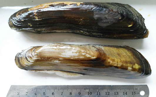 橄榄蛏蚌,其味道鲜美,素有“淮河鲍鱼”之称,是阜阳市一张独特的城市名片,但由于生态环境破坏和过度捕捞等因素,其自然资源在淮河流域分布已十分稀少。今年3月份,中国渔政船030号在淮河首次巡航中,万一兵副书记带队的巡航工作组,在淮河阜阳段发现了橄榄蛏蚌资源保护面临的问题,并随即抽调水生生物资源研究室和水产养殖研究室科技人员组成联合科研小组,对淮河阜南段开展橄榄蛏蚌生境和资源调查,在阜阳市水产局、阜南水产局等单位支持下,采集了一批橄榄蛏蚌亲本开展人工繁育技术研究。在短短一个多月内,联合科研小组夜以继日,刻苦攻关,对橄榄蛏蚌的性腺发育、钩介幼虫排放特性及寄生繁殖生物学进行了重点研究,在国内首次成功突破橄榄蛏蚌的人工繁育关键技术,为该濒危物种的保护和利用奠定了重要基础。