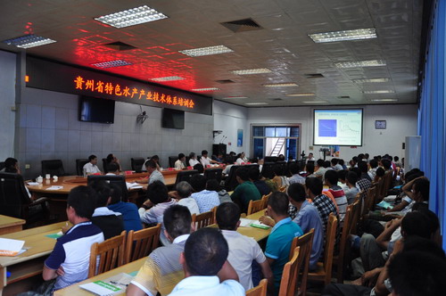 7月11日-12日,结和贵州省望谟县“农业科技发展活动月”工作安排,应贵州省农科院、贵州省水产研究所(贵阳综合试验站)邀请,国家大宗淡水鱼类产业技术体系在望谟县举办了水产养殖技术培训班。培训班由望谟县副县长韦炫章主持,县有关部门负责人、基层技术人员、养殖户等共129人参加了培训。 培训期间,体系首席科学家戈贤平研究员作了题为“水产饲料与养殖环境的关系”的讲座,详细阐述了养殖生物、饲料和养殖环境的关系,强调重视科学投喂和配制饲料的重要性,并针对贵州库区的网箱养殖提出了合理设置网箱和提高饲料质量方面的建议;病害防控研究室主任王桂堂研究员作了题为“鱼类寄生虫病的诊断与生态防控”的讲座,重点介绍了危害鱼类养殖的常见寄生虫,尤其是贵州地区已发现的寄生虫防治方法;细菌病防控岗位专家谢骏研究员作了题为“当前出血病的流行趋势与防控”的讲座,介绍了当前出血病的病因、流行情况和生态防控策略;鲤鱼复合育种岗位专家董在杰研究员作了题为“大宗淡水鱼新品种”的讲座,介绍了目前大宗淡水鱼新品种的特性,重点介绍了福瑞鲤的研制和推广应用情况;贵阳综合试验站站长杨兴研究员作了题为“网箱养殖”的讲座,介绍了目前网箱养殖在贵州的重要的养殖地位,并对照国外先进的网箱养殖经验,对贵州网箱的养殖提出了设施标准化、管理科学化等理念,以在充分利用水体进行养殖的同时最大限度的保护环境,做到可持续发展。专家们从各自的研究领域结合贵州省的实际情况,用通俗易懂的语言进行了讲解和分析,受到参加培训的技术人员和养殖户的欢迎。 体系专家还实地查看了望谟县网箱养殖,与当地主管部门负责人和技术人员及养殖户进行了交流,询问了网箱养殖种类、产量和市场价格及病害发生情况等,并从养殖品种、网箱设置、饲料投喂、病害防控、水质调控等方面提出了有关意见和建议。