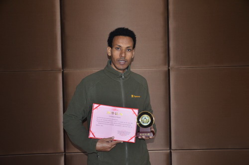 近日,在南京农业大学组织的2013年度优秀留学生评选中,无锡渔业学院2011级硕士留学生H. Michael Habtetsion(厄立特里亚籍)以其优秀的成绩、较强的科研能力及良好的日常表现等荣获南京农业大学2013年度优秀留学生之“品学兼优奖”。 2013年下半年,H. Michael Habtetsion在其导师戈贤平研究员的指导下,顺利完成了硕士毕业论文并通过了论文盲审、答辩,比原计划提前半年获得了南京农业大学毕业证书和硕士学位证书,成为了无锡渔业学院首位毕业的国际留学生。 据悉,南京农业大学本次共评选表彰了17名2013年度优秀留学生,其中13名留学生获品学兼优奖,4名留学生获单项成绩突出奖。