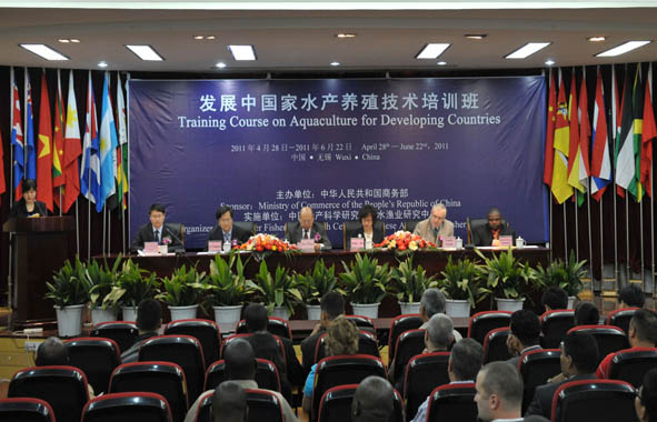徐跑主任在致辞中表示,今年是“十二五”的开局之年,商务部为进一步规范做好援外培训工作,启动了“援外培训质量年”活动,中心本着传承优良传统、创新发展的精神,开展了“培队伍、抓质量、重效果”系列活动,力争把培训班做成精品和品牌。李应仁处长希望培训班成为传播我国先进的水产养殖技术的平台、增进我国与发展中国家友谊的纽带,大力推进水产领域的南南合作。