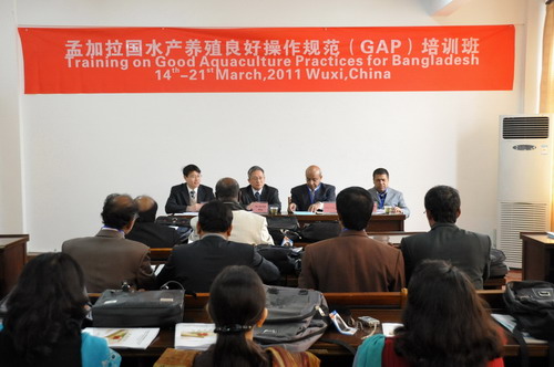 3月14日,受孟加拉国渔业和畜牧部委托,由中国水产科学研究院和管理与培训国际(MTI)(泰国)共同主办,我中心组织实施的“良好水产养殖操作规范(GAP)技术培训班”在无锡举行了开班典礼。孟加拉国国会议员Zillul Hakim、渔业和畜牧部秘书长Mosharraf Hossain,中心副主任邴旭文、教育培训处处长袁新华等出席了开班典礼。 邴旭文副主任对孟加拉国学员到中国学习考察表示热烈欢迎,并希望学员和中心的专家相互交流、分享水产养殖良好操作规范的实践和经验,为加强两国在渔业领域的技术交流和合作,提高现代水产养殖业的持续健康发展发挥重要作用。孟加拉国渔业和畜牧部秘书长Mosharraf Hossain就此次培训考察项目做了介绍,对水科院和淡水中心为此次培训所做的精心准备和组织工作表示感谢,希望通过此次培训能够比较系统地学到中国先进的水产养殖良好操作规范,推动本国水产养殖的可持续发展。 此次培训为期8天,共有孟加拉国国会议员、渔业与畜牧部的管理和技术官员、渔场场长等16名学员参加。本期培训班将通过课堂讲座、实地考察、交流讨论等方式使学员比较全面地了解和掌握中国水产养殖良好操作规范的应用及实施经验,还将组织学员赴北京参观访问水科院,与院领导和有关专家座谈交流,并在水科院举行培训班的结业仪式。 近年来,我中心积极发挥科学研究和国际培训的优势,加强国际交流与合作,积极响应发展中国家提出的在水产养殖领域进行技术支持的要求,通过承担中国商务部、农业部以及各国政府、国际组织委托的技术培训和官员研修班等,已为孟加拉国培训了70多名渔业高级技术和管理人才,赢得了良好的国际声誉。