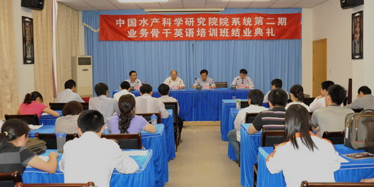 6月2日,院系统第二期业务骨干英语培训班结业仪式在淡水中心举行。水科院交流与合作处处长李应仁,淡水中心主任徐跑、教育培训处处长袁新华等出席了结业仪式,并为学员颁发了结业证书。 本次培训班历时45天,共有来自院系统的22名业务骨干参加了学习培训。培训期间,学员们充分利用中心承担的援外培训项目资源,以及外宾来访、学术交流会等机会,积极与国外学员、专家就共同关心的专业问题进行研讨交流,锻炼英语思维和表达能力,努力提升英语口语水平。最终,全体学员均通过了水科院组织的听力、写作和口语的综合评估,获得了结业证书。 在结业仪式上,李应仁处长指出,英语培训班给学员们提供了一个良好的英语学习氛围,培训学习期间,各位学员通过集中、专业的培训,并充分利用淡水中心承担援外培训项目资源,刻苦努力,主动和外国学员交流,英语表达和专业词汇运用能力有了很大提高,同时培训班的举办增进了院系统各所、站之间的交流,加深了友谊和提高了团队合作精神。希望各位学员在此次培训学习基础上,坚持英语学习,多学活用,积极参与国际交流合作,为我国水产事业的发展做出更大贡献。