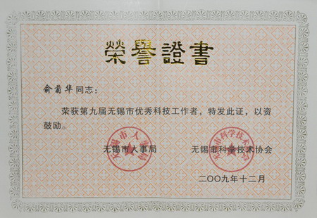 经无锡市人事局、无锡市科学技术协会评审,中心俞菊华研究员荣获“第九届无锡市优秀科技工作者”荣誉称号。 俞菊华研究员作为中心生物技术研究室副主任、“农业部淡水鱼类遗传育种与养殖生物学重点开放实验室”学术带头人之一,近十年来,在遗传育种理论研究方面取得了显蓍的成绩,并能运用理论于建鲤和罗非鱼等生产实践,使这两种鱼不断更新换代,确保了质量和产量。 中心科技工作者要以先进为榜样,团结协作、拼搏奉献、求实创新,不断创造新的业绩。