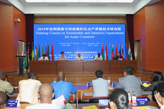 7月11日上午,由商务部主办、淡水渔业研究中心承办的“2019年非洲国家水产养殖技术培训班”和“2019年亚洲国家可持续集约化水产养殖技术培训班”同时开班。淡水渔业研究中心主任徐跑、无锡市商务局对外投资和经济合作处副处长李智出席了开班典礼并致辞。开班典礼由淡水渔业研究中心国际合作与教育处处长敬小军主持。