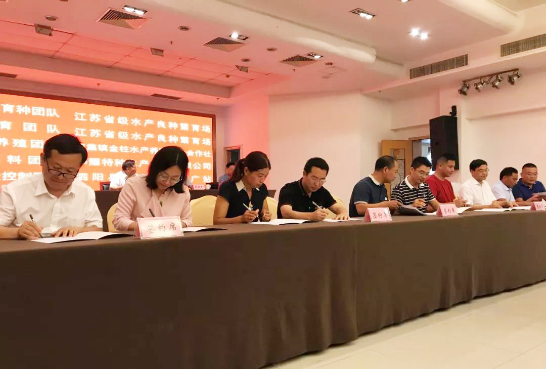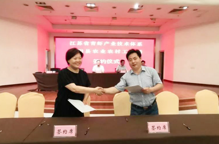 在科技帮扶签约仪式上,省青虾产业技术体系与泗阳县农业农村局,体系各个岗位、试验站与泗阳县相关推广单位、企业、养殖场分别进行了现场签约。签约仪式后,与会人员还参观考察了泗阳县杨集鱼种场、高渡曾嘴与周岗嘴青虾基地。